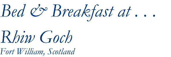 We’ve designed this website to give you a guide to our Bed and Breakfast, and also to the surrounding area. Hopefully this will show you not only how much we have to offer, but how much the whole area does. We might even persuade you that the best way to see the Highlands is from a base in Fort William.