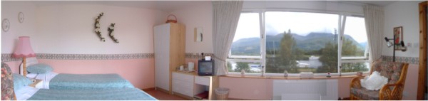 seriously recommend that you consider staying for a few nights with us. We offer you a choice of three fully equipped twin bedded rooms, with en-suite facilities, panoramic views and plenty of space. There is also a choice of breakfast from the traditional cooked to our own speciality...which is a secret. 'The Front Room' - Panoramic View